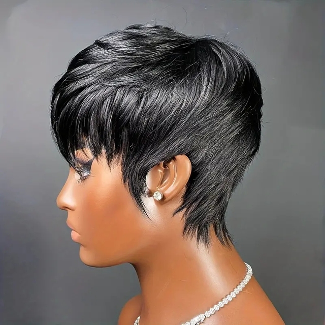 Pixie Human Hair Wig Easy-to-Wear & Natural Fit | Chic1B/1B27 Tones for Women Short Human Hair Wig Pixie Machine Made Wig
