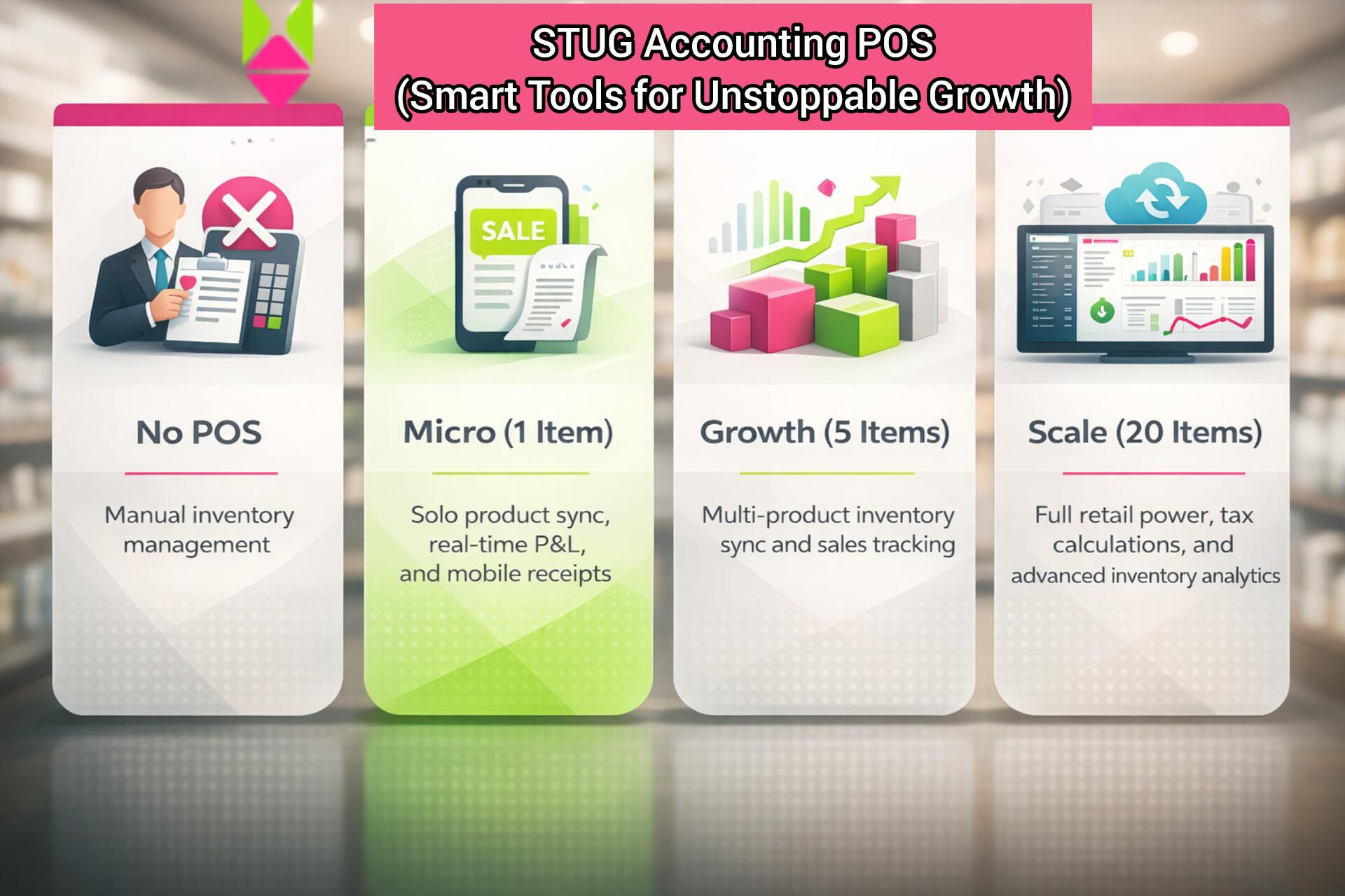 Growth is impossible if you don’t know your numbers. The STUG Accounting & POS system (powered by OpenPOS) is designed to remove the stress of manual bookkeeping. Whether you have a single flagship product or a growing inventory, we provide the tools to keep you organized 24/7.